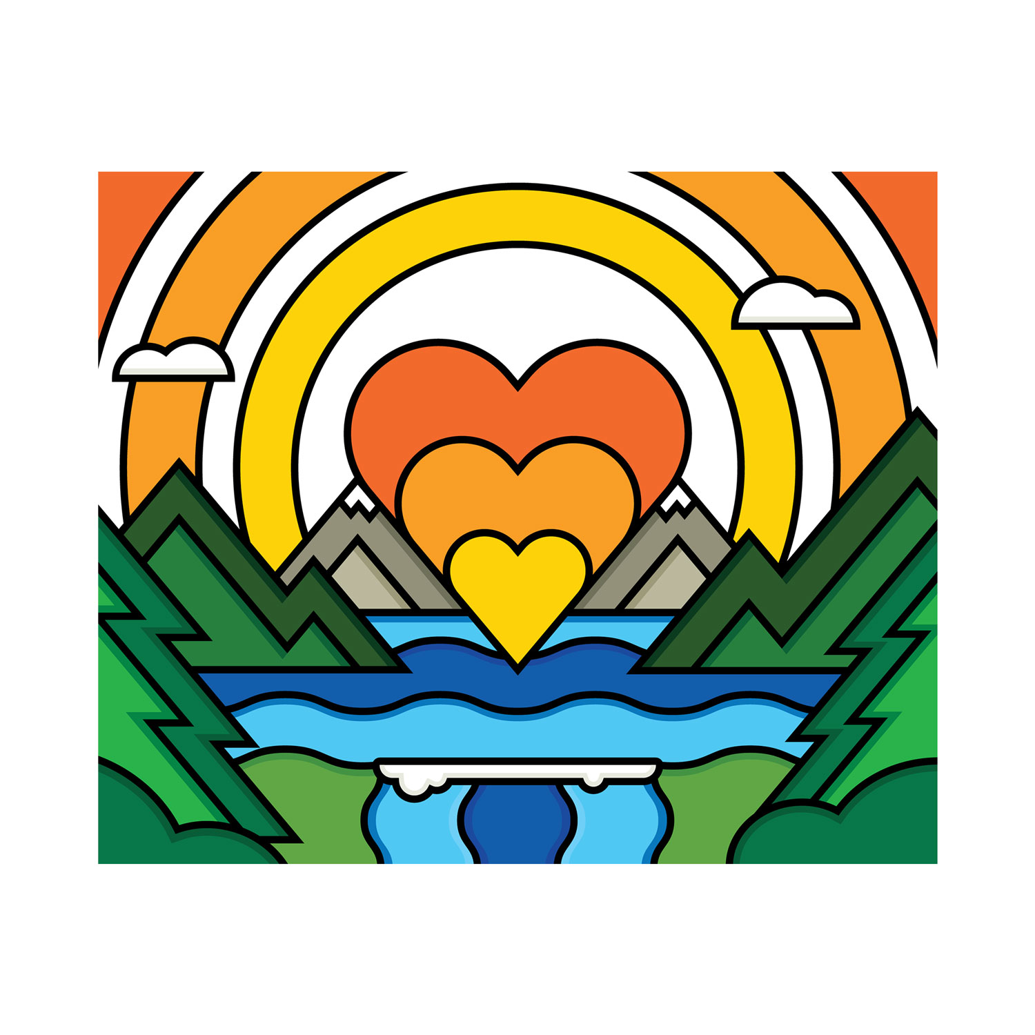 Self reflection, positivity, and love. All things that came to mind as this was created. Skateboarding has always been a way for me to be alone and reflect on life. It helps me find answers to important questions. I usually focus on downhill skateboarding which in turn helps me discover a lot of beautiful landscapes. This piece is a representation of my experience with meditation, skateboarding, and a close connection with nature.