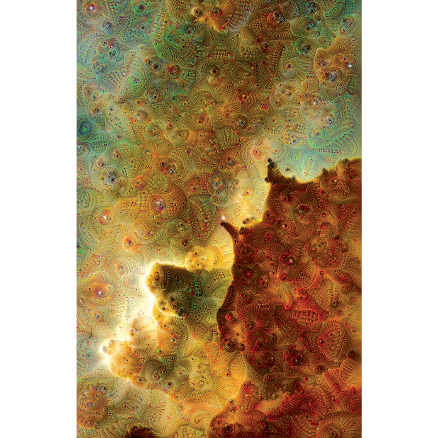 This artwork was inspired by the effects psychedelics can have on our mind. With the help of AI, these effects were artificially recreated.